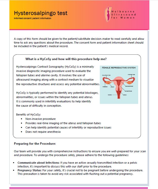 Hysterosalpingo test & Tubal Patency patient information sheet