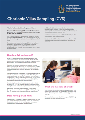 RANZCOG Chorionic Villus Sampling (CVS) patient information sheet